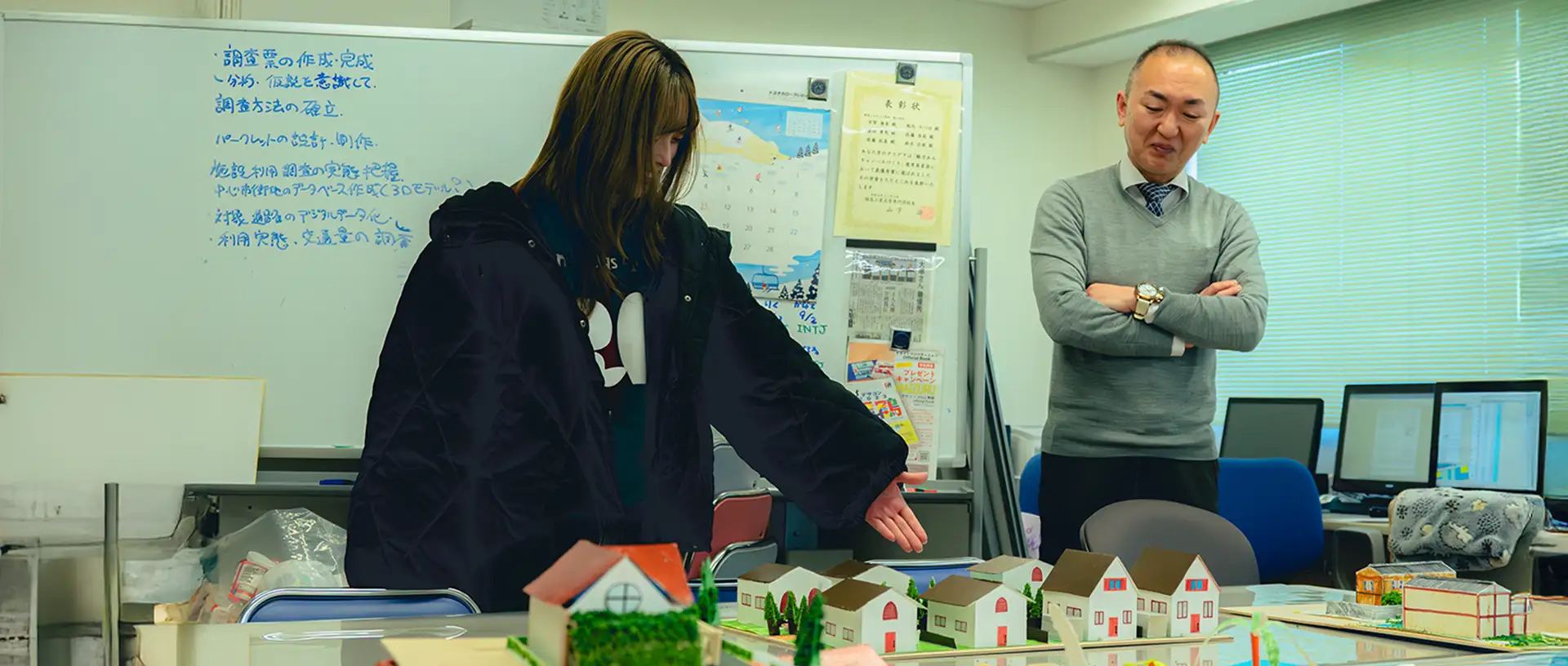 産業技術システム工学とビジネスコミュニケーションの2つの専攻があり、